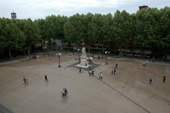 In quella che oggi è piazza Napoleone, due secoli fa sorgevano una chiesa, San Pietro Maggiore, e un intero quartiere con case e palazzi, che ai primi dell’Ottocento fu raso al suolo per fare posto a quella e che i Lucchesi chiamano piazza Grande.