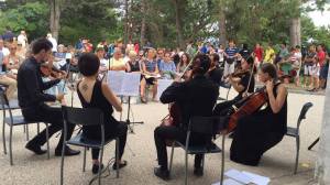 Il pullman arriverà a Ceserana dove alle 15.30 si potrà assistere a un concerto per violino e violoncello. Alle 17 arrivo a Poggio, alla Chiesa di San Biagio, per godere al fresco del concerto dell’Orchestra d’archi del California Institute of Music. Alle 18,30 a Careggine, appuntamento con l’esibizione dell’Orchestra Suzuki.