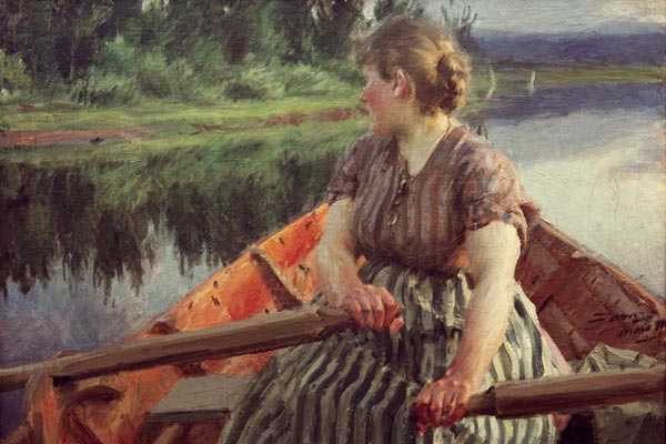 “Anders Zorn…fu un pittore svedese, nato il 18 febbraio 1860 a Mora, città sulle rive del lago Sijian. Si formò all’Accademia di Belle Arti di Stoccolma, ma intraprese vari viaggi di studio e soggiornò in Spagna, in Inghilterra ed in Francia, dove approfondì le tecniche dell’acquerello e dell’olio. I suoi soggetti spaziarono dal ritratto al paesaggio ed a scene di genere, con ambientazioni eleganti ed al contempo naturali, rivelatrici di un candore espressivo capace di raccontare scene di vita nella loro spontaneità del momento...”