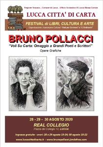 Con il Patrocinio della Regione Toscana, del Comune di Lucca e dell’Ufficio Scolastico di Lucca e Massa Carrara, Venerdi 28, Sabato 29 e Domenica 30 Agosto, al primo piano dello storico palazzo del “Real Collegio” di Lucca, in Piazza del Collegio 13, all’interno del Festival di Libri, Cultura e Arte “Lucca Città di Carta”, si terrà la mostra personale dell’artista Bruno Pollacci, intitolata “Voli su Carta: Omaggio a Grandi Poeti e Scrittori”.