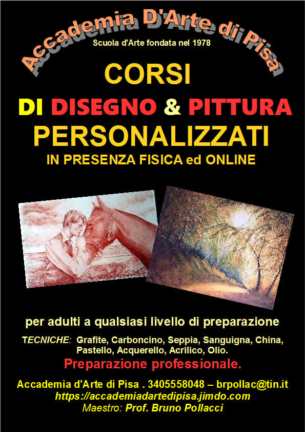 Mercoledi 1 settembre 2021 riaprono i corsi di pittura e disegno in presenza fisica all’Accademia d’Arte di Pisa del Maestro Bruno Pollacci.