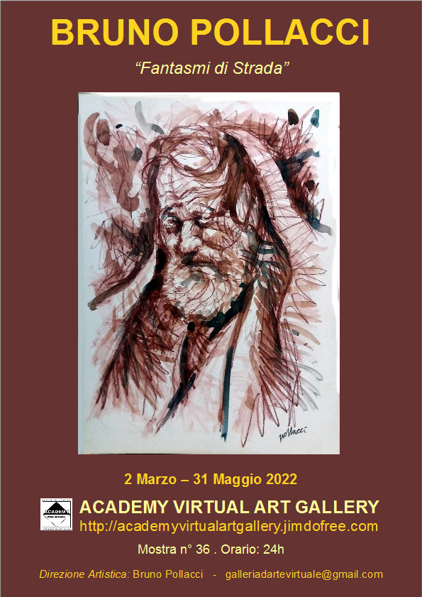 Si apre la mostra di Grafica e Pittura di Bruno Pollacci: “Fantasmi di Strada”, allestita all’ “Academy Virtual Art Gallery”, galleria d’Arte virtuale no profit diretta da Bruno Pollacci, direttore dell’Accademia d’Arte di Pisa.