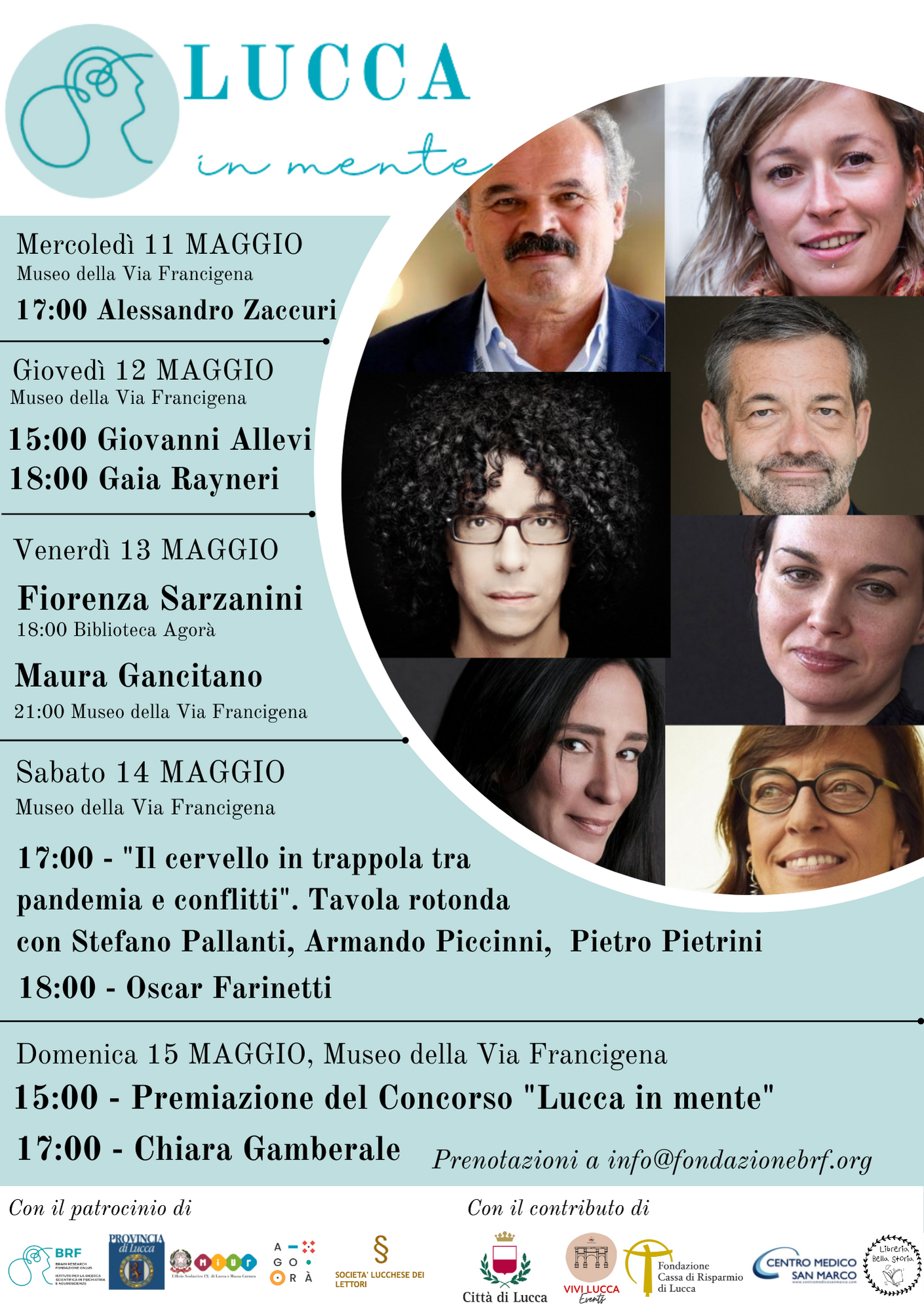 Un programma, dunque, ricco di eventi organizzato dalla Fondazione grazie anche al contributo del Comune di Lucca e di Carilucca. Che, ancora una volta, hanno dimostrato di credere nella filosofia e nell’obiettivo della Fondazione BRF: far nascere nel cuore di Lucca un appuntamento annuale con la cultura e il benessere della nostra mente, perché è sempre necessario ricordare che una buona salute passa anche dal cervello.