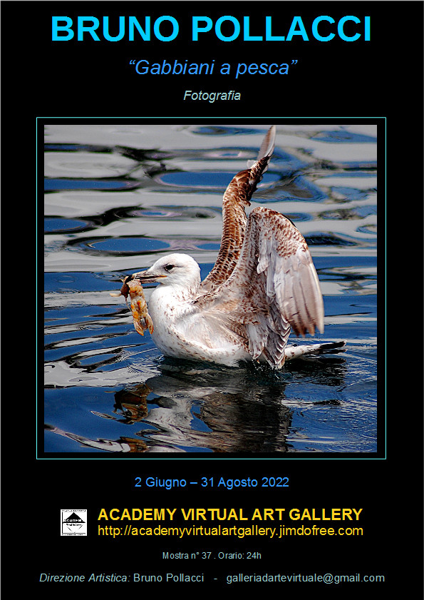 Dal 2 Giugno si apre la mostra di Fotografia: BRUNO POLLACCI: “Gabbiani a Pesca”, allestita presso l’ “Academy Virtual Art Gallery”, galleria d’Arte virtuale no profit diretta da Bruno Pollacci, direttore dell’Accademia d’Arte di Pisa.